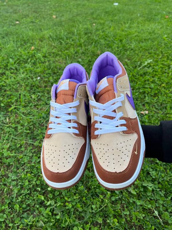 Верх кросівок Nike Dunk Low Setsubun може похвалитися стильним поєднанням преміальних замшевих та шкіряних матеріалів коричневих відтінків з ефектними фіолетовими акцентами на підкладці та галочках. Верх доповнює біла підошва з устілками, прикрашеними хитромудрими витворами мистецтва відомого художника Утагави Куніосі, який майстерно передав суть традиційної церемонії кидання бобів. Відповідно до шанованої спадщини Nike Dunk видання Setsubun має м'який комір і язичок для підвищеного комфорту та підтримки, а також міцну гумову підошву.