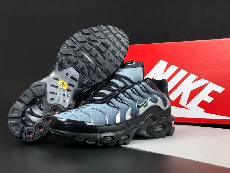 артикул 12078 чорні з блакитним сезон: демісезонні виробник: В`єтнам модель: Nike Air Max Plus TN розміри: 41 42 43 44 45 46 матеріал: прес шкіра, щільна сітка, підошва пінка на повітряних подушках