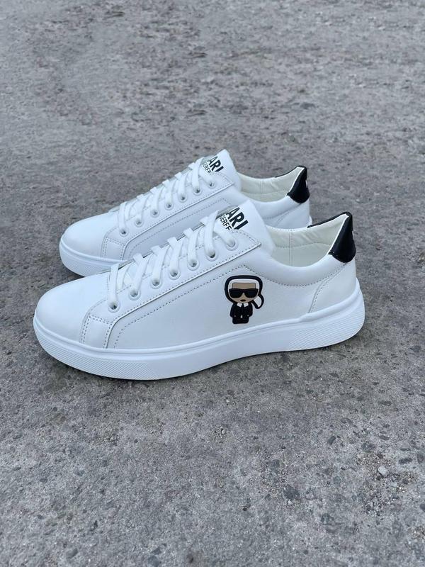 Чоловічі шкіряні кеди білі karl lagerfeld кросівки чоловічі з натуральної шкіри