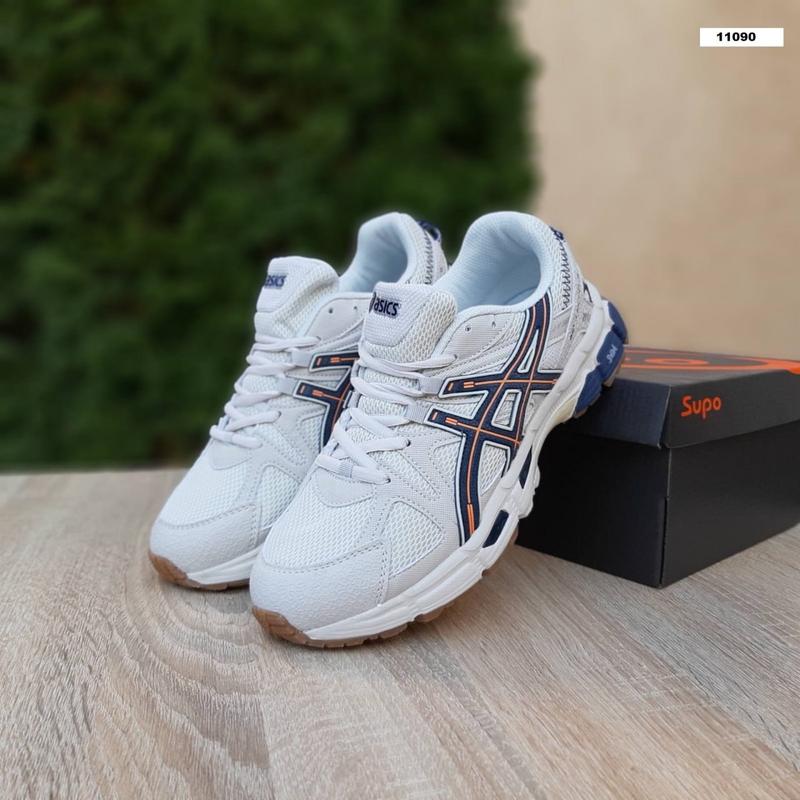 11090 артикул Asics Gel Бежеві з синім та помаранчевим виробництво В'єтнам, якість ТОП Розміри 40-44 40й(25,5см), 41й(26см), 42й(26,5см), 43й(27,5см), 44й(28см) Верх шкіра/текстиль, підошва піна