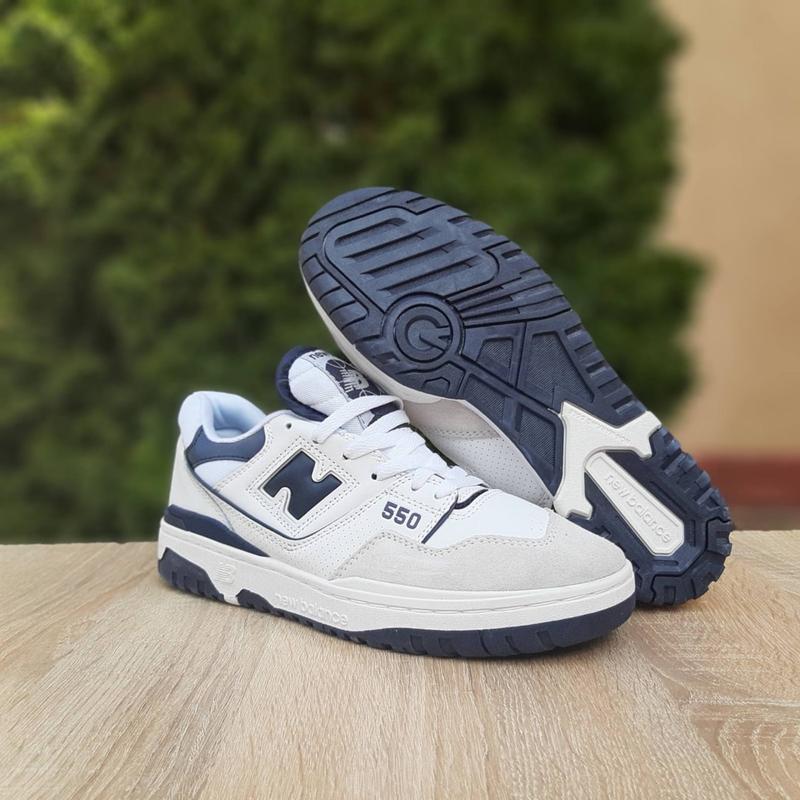 арт 11199 New Balance 550 білі з синім шкіра/замша виробництво В'єтнам, якість ТОП (ліцензія) Верх: шкіра/замша, підошва гума Розміри 41-45 маломірять !!! 41й(25,5см), 42й(26см), 43й(27см), 44й(27,5см), 45й(28см)