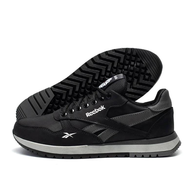 Чоловічі шкіряні демісезонні кросівки reebok колір чорний, сірий