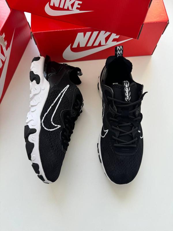 Nike React Vision Black White Виробник: фабричний Вʼєтнам. Модель уособлення максимального комфорту, оригінальної форми і багатошарової текстури. Надзвичайно легкі, підійдуть для пробіжок та повсякденного використання. Матеріал: верх - сітка, замша; підошва - піна, гумовий протектор. Розміри: 40 (25,5 см), 41 (26,0 см), 42 (26,5 см), 43 (27,5 см), 44 (28,0 см), 45 (29,0 см) Комплект: оригінальна коробка