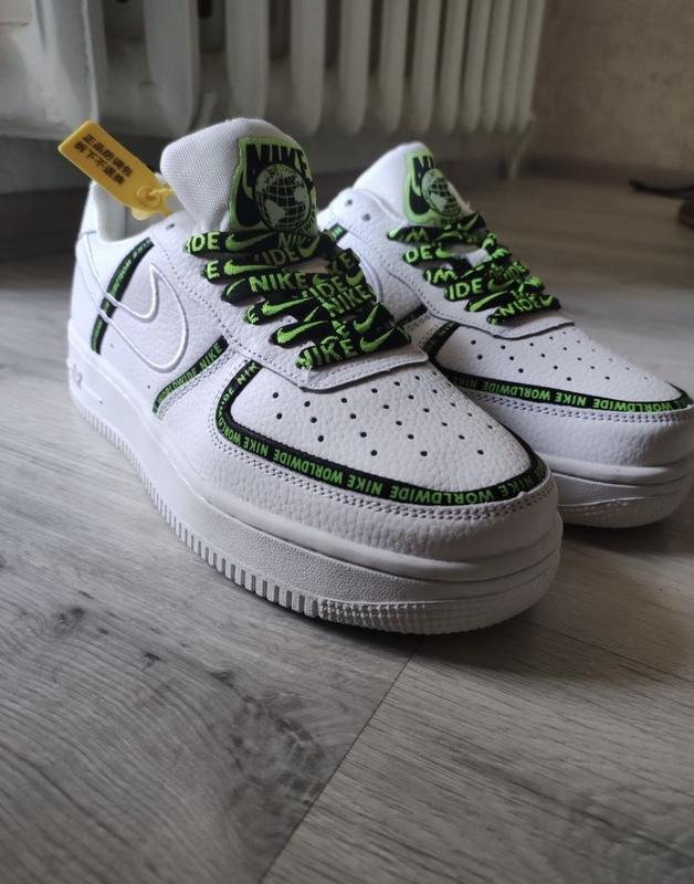 “Стильні та зручні кросівки Nike з білою шкіряною поверхнею і зеленими акцентами. Ідеально підходять для повсякденного носіння або занять спортом. М’яка підошва забезпечує комфорт під час ходьби, а міцні матеріали гарантують тривалу зносостійкість. Легко поєднуються з будь-яким одягом. Розмір: 43 В дуже хорошому стані, носили кілька разів.”