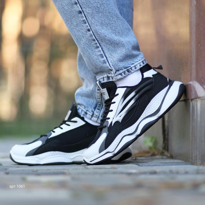 Взуття без бренду Арт: 1061 Розміри в наявності: 40-25.5см, 41-26см, 42-26-26.5см, 43-26.5-27см, 44-27см, 45-27.5см Матеріали: Верх: екошкіра + текстиль + гумові вставки. Підошва - піна. Опис: Круті об'ємні кросівки в завжди актуальному чорно-білому кольорі! Мають рефлективні вставки! Привернуть погляди людей. Гарна якість. Акуратно виконані, приємні матеріали на дотик. Легкі, м'які та дуже комфортні!
