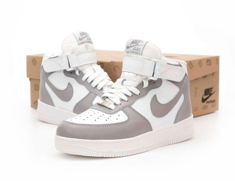 Зимові чоловічі кросівки nike air force 1 high grey white (хутро) 41-42-43-44-45