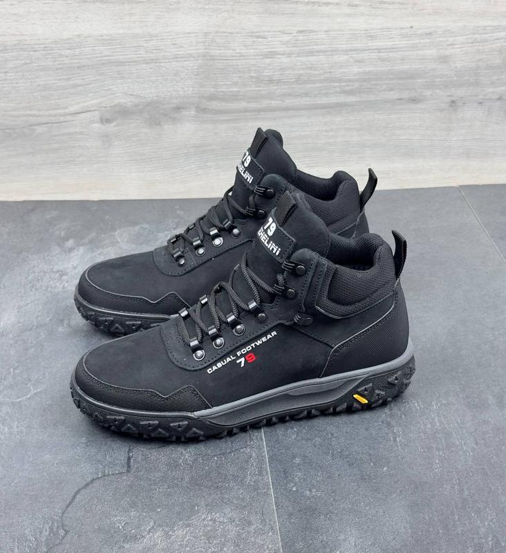 Зимові чоловічі кросівки/черевики на хутрі натуральна шкіра (нубук) у чорному кольорі 02-5...