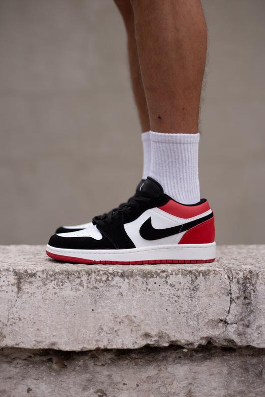Nike Air Jordan 1 Low White Black/Red Розміри (см): 41 (26,5) 42 (27) 43 (27,5) 44 (28) 45 (29) Nike Air Jordan 1 Low White Black/Red — легендарні низькопрофільні кросівки, що поєднують стиль і комфорт. Ця модель зберігає дизайн 1985 року, оновлений сучасними матеріалами для максимального зручності та довговічності. Матеріал верху: Нубук, Шкіра Матеріал підошви: Гума Упакування: Фірмова коробка, пакет, папір