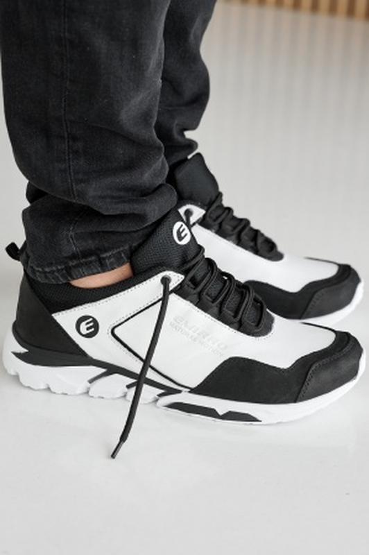 Мужские кроссовки кожаные весенне-осенние черные-белые Emiro А2