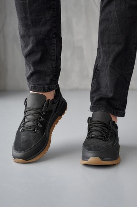 Чоловічі кросівки шкіряні весняно-осінні чорні Yuves 244