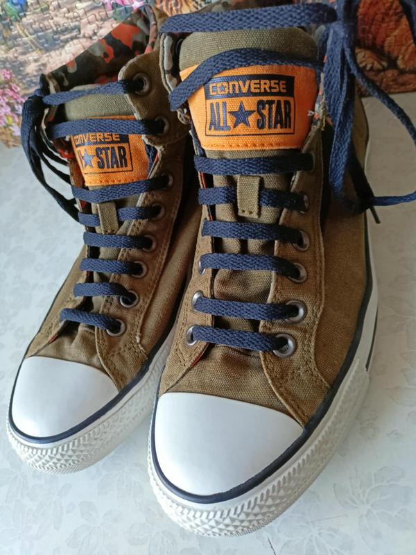 Кращий і зручний стиль Converse ) відчуйте різницю самопочуття в оригінальному взутті в повсякденному житті ) Високі в гарному стані зручні кеди кросівки кросовки оригінал розмір 10 чи евро 44 ,довжина устілки 28.5 см , колір пальмово-зелений ,чорний комуфляж Відправка новою чи укр.поштою ,в Черкасах можна купити при зустрічі .