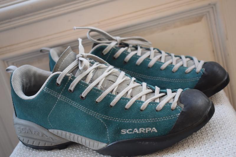 Продам оригінальні фірмові замшеві трекінгові кросівки кеди-сліпи кросівки снікерси мокасини Scarpa темно-бірюзові, натуральний замш, гнучка підошва vibram кросівки в ідеальному стані, без дефектів, без нюансів, розмір EU- 41 Uk-7 Made in Romania устілка — 26,5 см Scarpa. Оригінал 100% Дивіться інші оголошення.