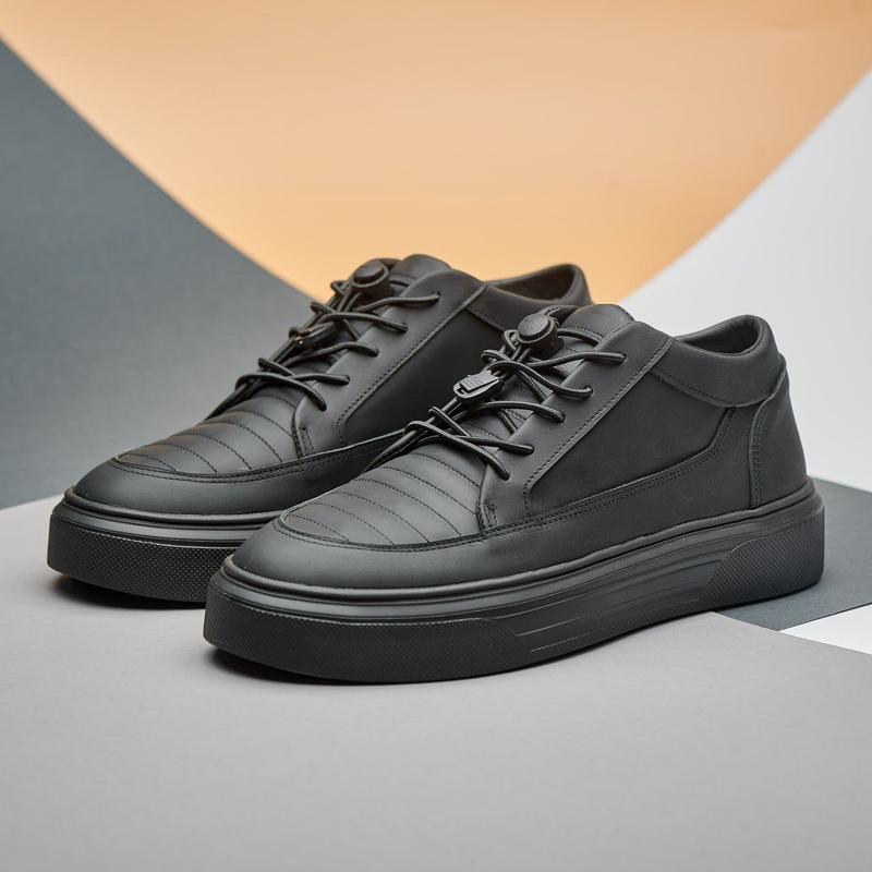 Кросівки чоловічі чорні система швидкого шнурування натуральна шкіра тк-96