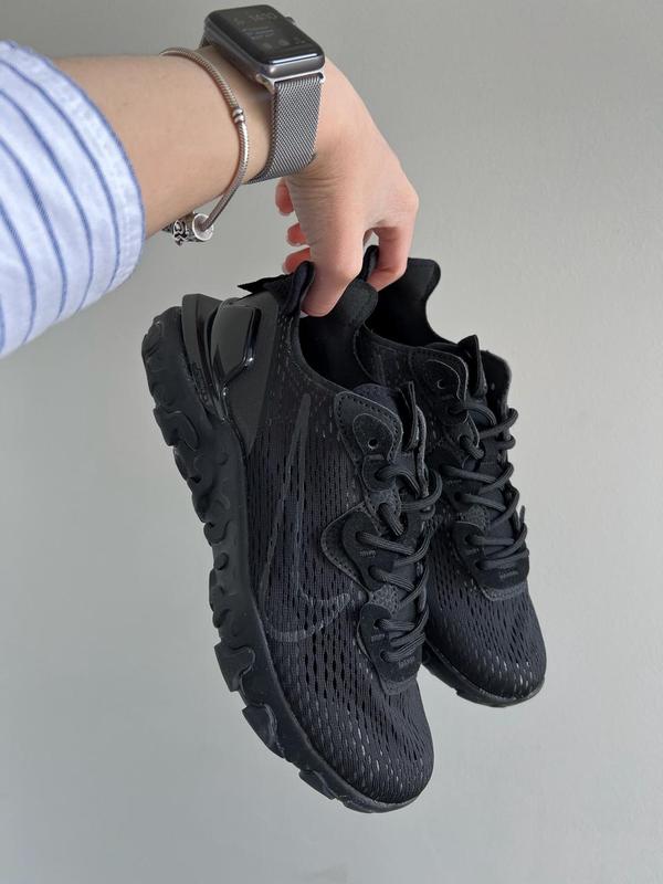 Прошивка: Кросівки мають міцну, акуратну прошивку, що забезпечує довговічність навіть при активному використанні. Устілка: Устілка виготовлена з м'якої піни з додатковою амортизацією, що дарує комфорт при кожному кроці. Матеріал: Верх виконаний із дихаючої сітки з синтетичними накладками для підвищеної міцності та підтримки стопи. Дизайн: Nike React Vision Black має сучасний, футуристичний вигляд із виразними лініями, мінімалістичною чорною палітрою та характерними деталями на підошві. Спосіб використання: Ідеальні як для повсякденного носіння у місті, так і для активного способу життя — прогулянок, поїздок або роботи на ногах. Головні переваги: Надзвичайно легка і пружна підошва React для максимального комфорту Повітропроникність завдяки сітчастому верху Стабільна посадка і підтримка стопи Стильний дизайн, який підходить до будь-якого вбрання Підвищена зносостійкість завдяки якісним матеріалам