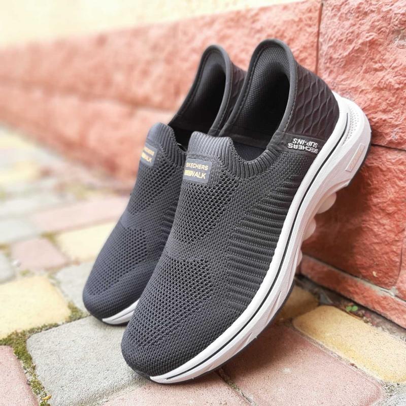 Мужские кроссовки skechers slip-ins go walk , серые тапочки, мокасины, слипоны на лето