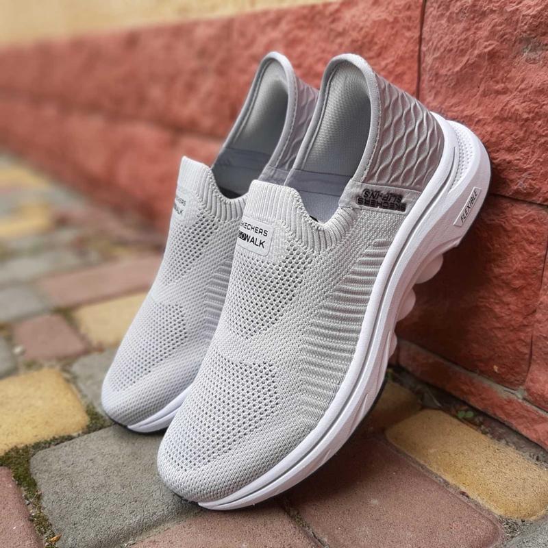 Мужские кроссовки skechers slip-ins go walk , серые тапочки, мокасины, слипоны на лето