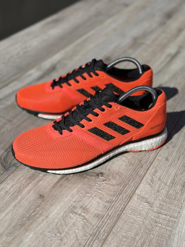 Оригінальні бігові кросівки adidas adizero adios 4 у яскравому оранжевому кольорі. Дуже легка, професійна модель. Технологія Boost Вдягались 1 раз , стан нового взуття. Розмір взуття: 42 - 26.5см