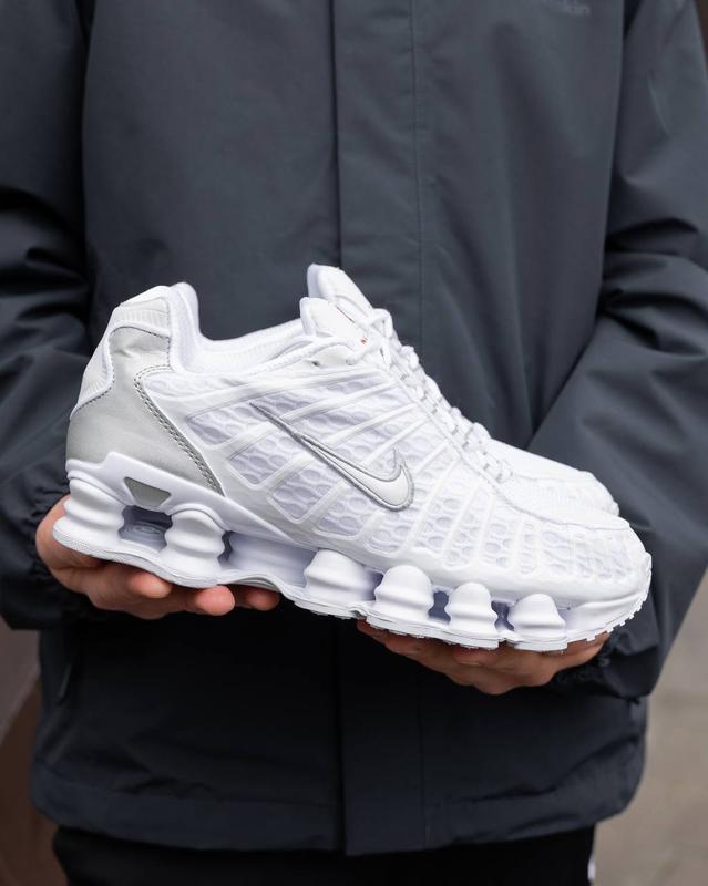 Nike Shox TL White NK147 pwr Виробник: фабричний Вʼєтнам. Технологія Nike Shox поєднує пружні і гнучкі стовпці з регулюючими пластинами, утворюючи чудову систему амортизації, яка стискається і швидко відновлює форму. Матеріал: текстиль, шкіра; підошва - гума з технологіє Nike Shox. Розміри: 41 (27,0 см), 42 (27,5 см), 43 (28,5 см), 44 (29,0 см), 45 (29,5 см) Комплект: оригінальна коробка + брендовий папір