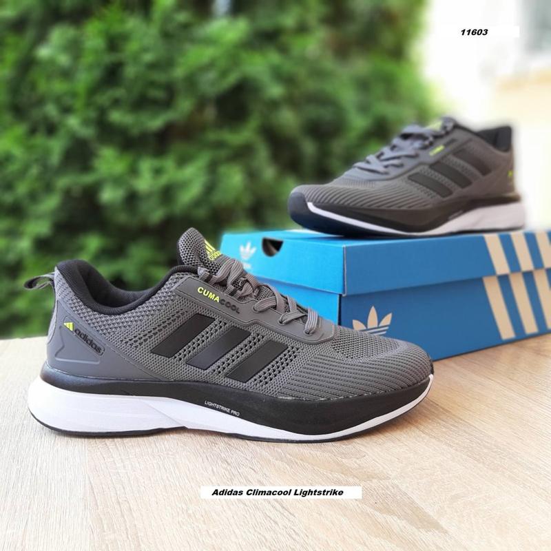 11603odes Adidas Climacool Lightstrike Pro темно сірі з чорним виробник В'єтнам, якість відмінна Верх щільний текстиль та велика сітка, підошва піна Розміри 41-46 41й(26см), 42й(26,5см), 43й(27,5см), 44й(28см), 45й(28,5см), 46й(29см) Оплата при отриманні товару на пошті