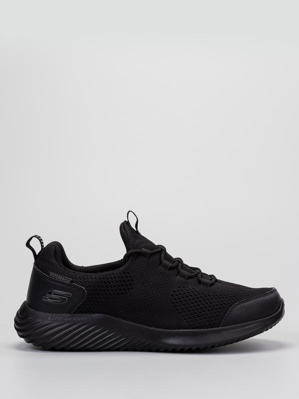 нові чоловічі кросівки Skechers waterproof розмір 43 колір чорний Skechers Bounder Stocked - Waterproof (999296 BBK) чоловічі кросівки чорного кольору. Особливості: • Верх виготовлений з сітчастого текстилю з синтетичними вставками • Водонепроникна мембрана • Устілка Air Cooled Memory Foam з ефектом пам'яті • Гнучка проміжна підошва поглинає удари при ходьбі • Рельєфна підошва для відмінного зчеплення з поверхнею • М'які кант і язичок