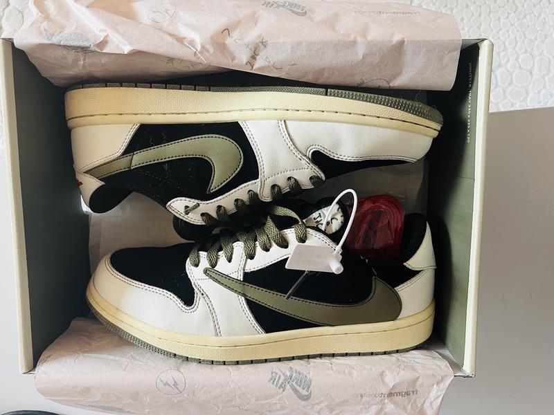 перша модель нових кросівок від Nike та Travis Scott з реверсивним свушем,по якому відразу впізнаєш співпрацю між брендом та репером ,дві пари шнурів з червоним та чорним кольорами,43 EUR розмір(27,5 см устілка),якщо є якісь питання - звертайтеся