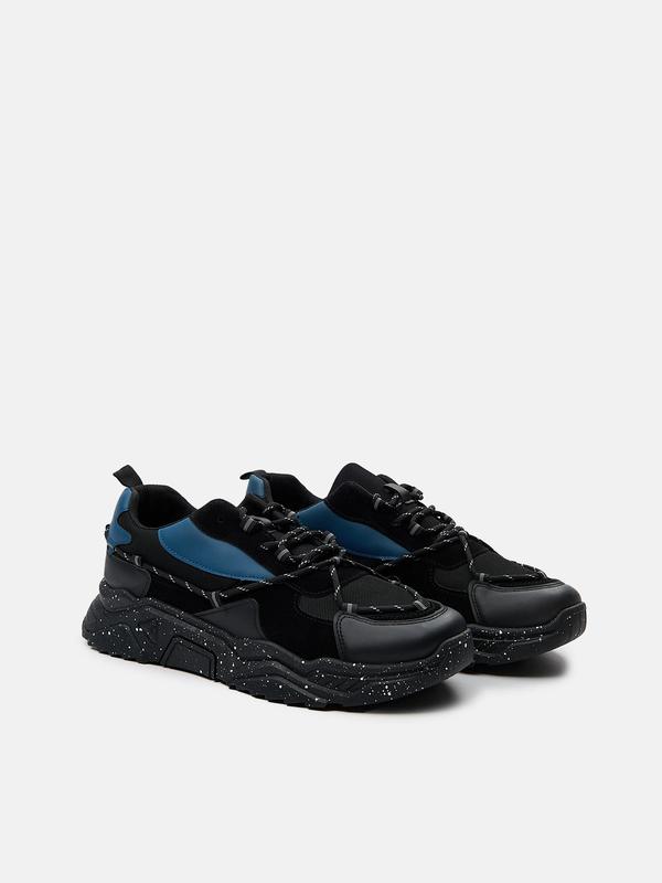 Черно-синие кроссовки с рефлекторами для шнуровок от Sinsay. Состояние новых. Размер - 41. Потолка - 26,5 см. Обуты 2 раза. Не подходит размер.