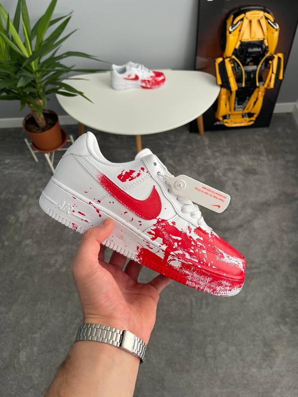 Nike Air Force 1 Custom Blood 🩸 • Матеріал: шкіра • Виробник: Вʼєтнам 🇻🇳 (по факту Китай) • Комплект: фірмова коробка, пакувальний папір • Розміри: 41-45 (41-26 см; 42-26,5 см; 43-27,5 см; 44-28 см; 45-29 см) • Арт 1673 lstr