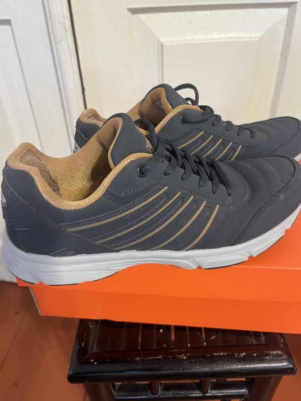 Чоловічі кросівки виробництва Restime(Україна)зі штучного нубука.Колір темно-синій з помаранчевими смужками.Дуже легкі.Вдягалися один раз,не підійшов розмір.Розмір 43,довжина устілки 27,5 см,але йдуть на розмір меньше-на 42й.Стан ідеальний.