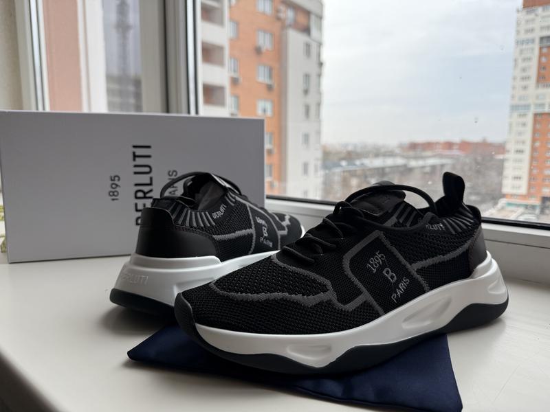 Информация о товаре Бренд: Berluti Модель: Shadow Knit and Leather Sneaker(Кроссовки Shadow из трикотажа и кожи) Цвет: Черный Материалы: Комбинация трикотажной основы, вставок из телячьей кожи, покрытых мягкой матовой резиной, и резиновой подошвы.