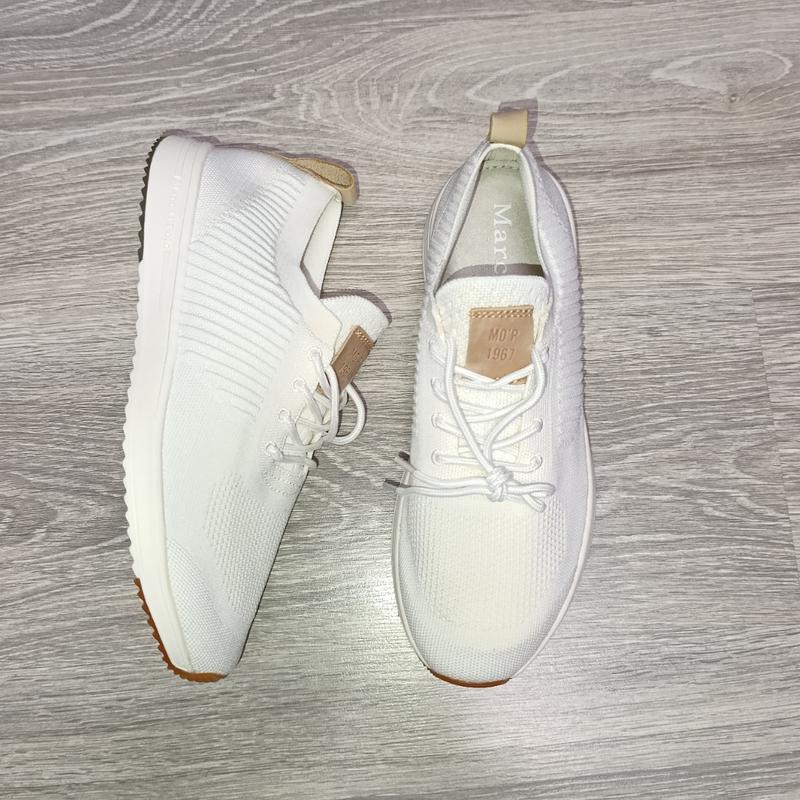 Мужские кроссовки MARC O'POLO (10223713503604-100) из текстиля с кожаной отделкой. Особенности: • Резиновая подошва • Съемная текстильная стелька • Кожаная отделка • Шнуровка