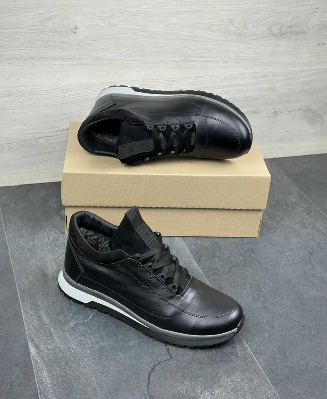 Мужские кожаные зимние кроссовки Цена: 2750 грн. есть после платья. Сезон: зима. Тип: черевики/кросsвки Пол: мужской Цвет черный Верх: натуральная кожа Середина: натуральная шерсть (набивная) Подошва: термополиуретан Стиль: повседневный Размеры: 40,41,42,43,44,45. 40-(26 см) 41-(27 см) 42-(28 см) 43-(28,5 см) 44-(29 см) 45-(30 см)