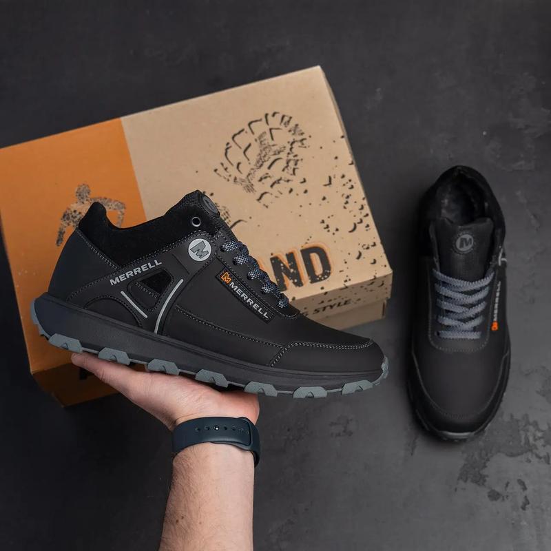Чоловічі зимові шкіряні кросівки черевики merrell clasic black чорні
