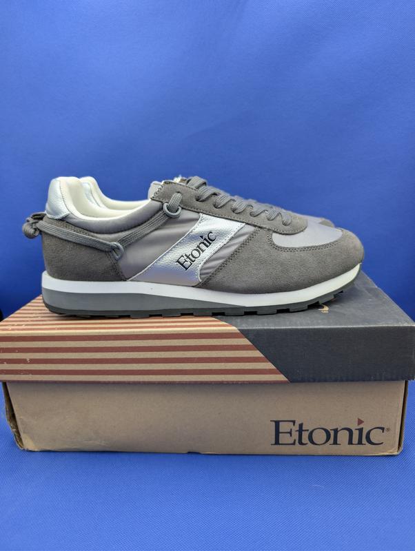 Кросівки Etonic Eclipse Kilometro (10us). Цей бренд у нас мало хто знає, але насправді це перший у світі виробник спортивного взуття. Класичний силует 80-х. Для виробництва використовується натуральна замша та дуже якісний нейлон. У цій парі використовується підметка з чорної каучукової гуми. Наш розмір — 43. Абсолютно нові кросівки, у рідній коробці. У комплекті також постачається додаткова пара шнурків. Оригінал. Можлива доставка по Україні (Нова Пошта, Укрпошта) — форма оплати за договореністю.