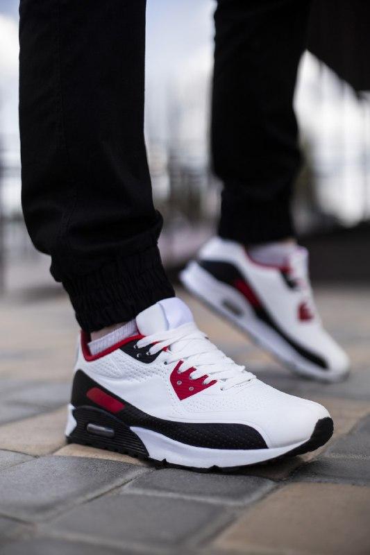 Лейк Барс 90 білі з чорно-червоними вставками (В01780) Матеріал: еко шкіра Підошва: гума + повітряний балон Розміри: 41 42 43 44 45 46 ВАЖЛИВО!!! Наявність розмірів уточнюйте, будь ласка!