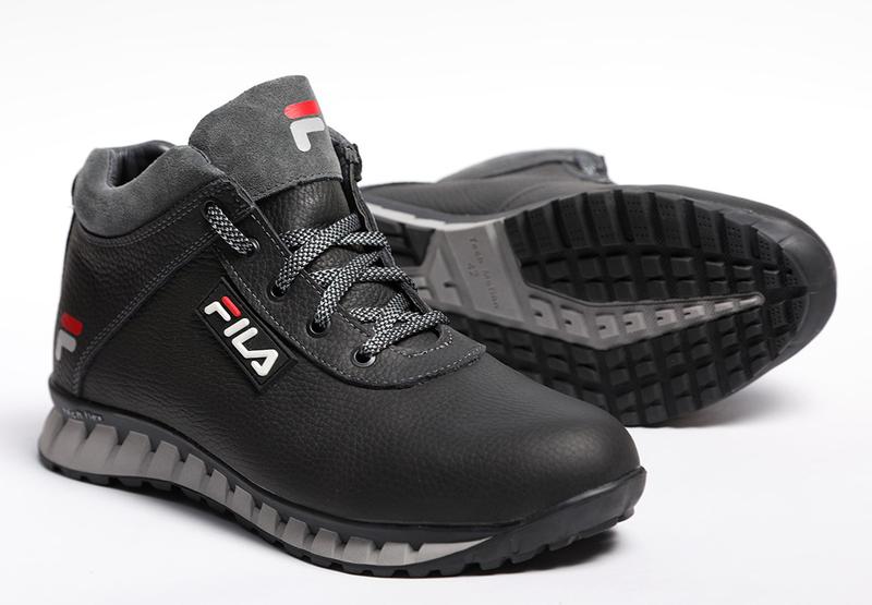 Кроссовки кожаные зимние Fila Tech Motion Прочный верх из натуральной кожи и внутренняя отделка из набивного меха создают комфортные условия для повседневной носки и занятий спортом. Характеристика товара: Вид обуви: ботинки спортивные / кроссовки Сезон: зима Материал верха: натуральная кожа / натур. замша Утеплитель: набивной мех (шерсть натуральная) Материал подошвы: ТЭП (термоэластомер) сочетает в себе эластичность каучука и высокую стойкость к истиранию. Тип застежки: шнуровка Цвет: черный / серый Стиль: спортивный / повседневный В данной модели верх выполнен из натуральной замши. Язычок полностью кожаный, без текстильных вставок. Самое качественное исполнение среди всех моделей такого плана. Размеры: 39 40 41 42 43 44 45 46 (идут в размер) 39 - стелька 25.7 см (стопа 25.2-25.6 см) 40 - стелька 26.6 см (стопа 26.1-26.5 см) 41 - стелька 27.3 см (стопа 26.8-27.1 см) 42 - стелька 27.8 см (стопа 27.5-27.7 см) 43 - стелька 28.5 см (стопа 28-28.4 см) 44 - стелька 29.2 см (стопа 28.8-29 см) 45 - стелька 29.7 см (стопа 29.3-29.5 см) 46 - стелька 30.4 см (стопа 30-30.2 см) Модель хорошо идет на полноту и подъем. В любом случае, наличие размера и длину по стельке согласовываем при оформлении заказа. Доставка Новой Почтой, Justin, Деливери, Укрпочтой, Ночным Экспрессом. Возможна отправка наложенным платежом при условии частичной предоплаты (130 грн).