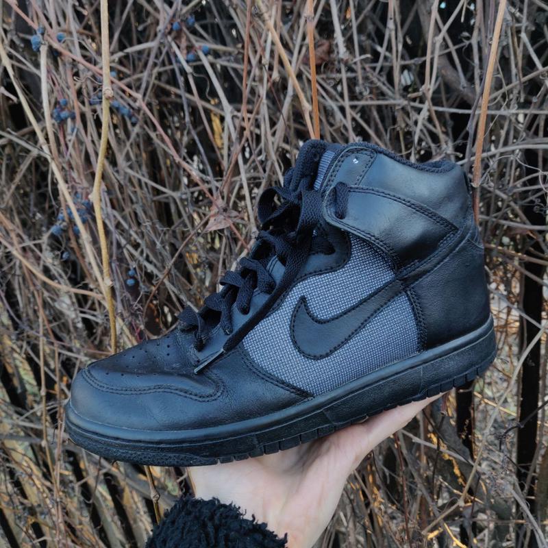Оригінальні кросівки від Nike. Модель dunk high. Рідкісна красива забарвлення. Актуальний силует в наш час. Стан зовні дуже хороше (мінімальні заломи), підошва практично нова. Єдиний дефект це протерті задники (останнє фото). Проблема поширена, так що ремонт труднощів не складе. Розмірна бирка стерта, але розмір орієнтовно 38, 24.5 по устілці.