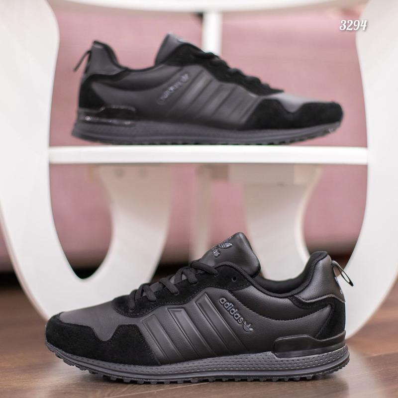 Кросовки Adidas Артикул: 3294 (Мужские) • Цвет: чёрные • Сезон: демисезон • Производитель: Вьетнам Отличное качество • Материал: кожа+замш, подошва пена, в фирменных коробках • Размеры: 41-46р 41-26см, 42-26,5см, 43-27,5см, 44-28см, 45-28,5см, 46-29см • Цена 1150 грн
