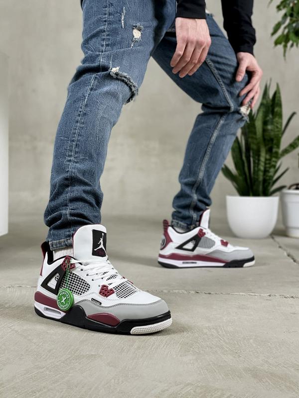 JORDAN 4 RETRO PSG -виробник в'єтнам -топ якість-розміри в наявності 36,37,38,39,40,41,42,43,44,45,46,47 -демісезонні -шкіра -фірмові коробки -заокруглень носик -плоска гумова підошва -шнурівка спереду -деталі обробки включають текстову мітку PANAME -значок PSG на гумовому язичку п'яти