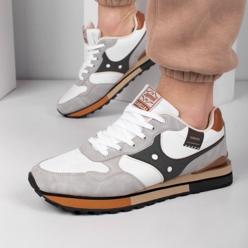 Чоловічі сіро-білі кросівки Матеріал верху: Екошкіра/екозамша Матеріал устілки: Текстиль Колір: Сіро-білий Вид застібки: Шнурівка Сезон: Весна/Oсінь