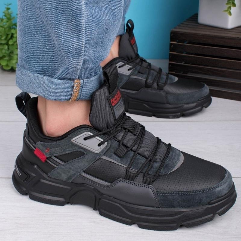 Чоловічі чорно-сірі кросівки на шнурівці