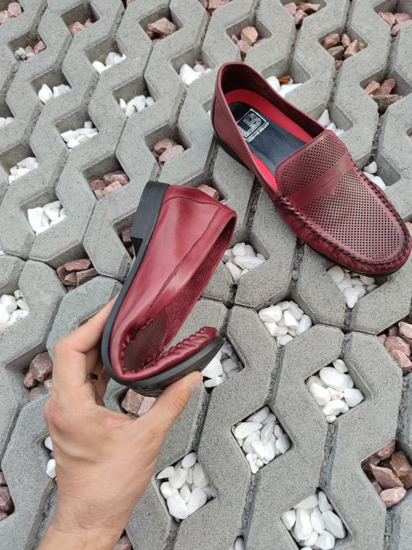 Вражаючі червоні чоловічі мокасини з перфорацією. м'яка шкіра та еластична підошва!