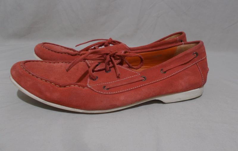 Мокасини в гарному стані — замша на закаблуках потребує чищення. Верх — натуральна замша, всередині натуральна шкіра, підошва гладка з клеймом бренда. Ціна подібних ~500 лю Заміри (покований 46): устілка 31*10 см