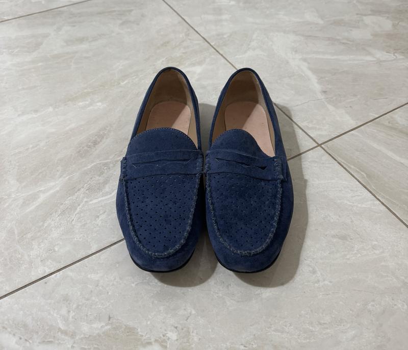 Чоловічі мокасини виконані з натуральної замші класичного синього кольору. Наскрізна перфорація. Натуральна італійська замша