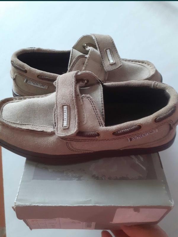 Комфортні туфлі-мокасини для хлопчика.37 Розмір,по устільці 22,5см,глибокі.Колір-бежеві.На липучці.Фірма outventure.Нові.