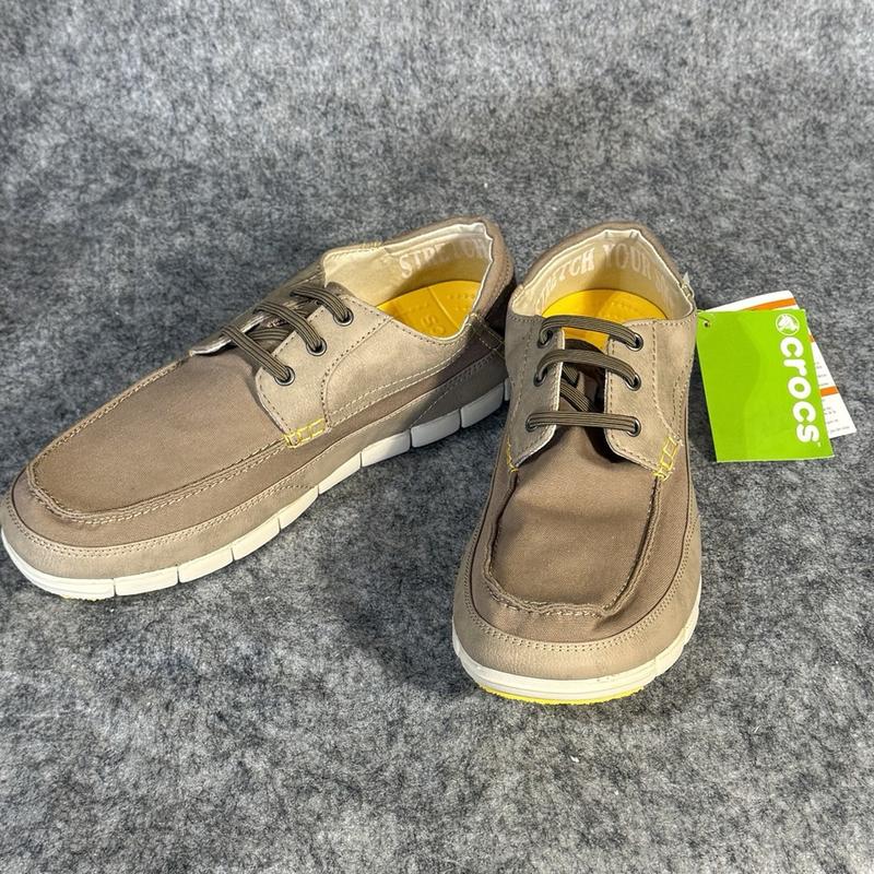Мокасины для мужчин от crocs. Размер 45-46. Цвет - коричневый. Стелька от края до края 30,5 см на ногу 30 см