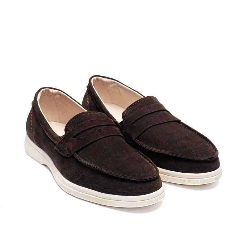 Чоловічі шкіряні лофери Dark Chocolate Код моделі: L108 шок Матеріал верху: натуральна замша Матеріал підкладки: натуральна шкіра Матеріал устілки: натуральна шкіра Матеріал підошви: ТЕП Розмірна сітка: 40-26 41-27 42-28 43-28,5 44-29 45-29,5