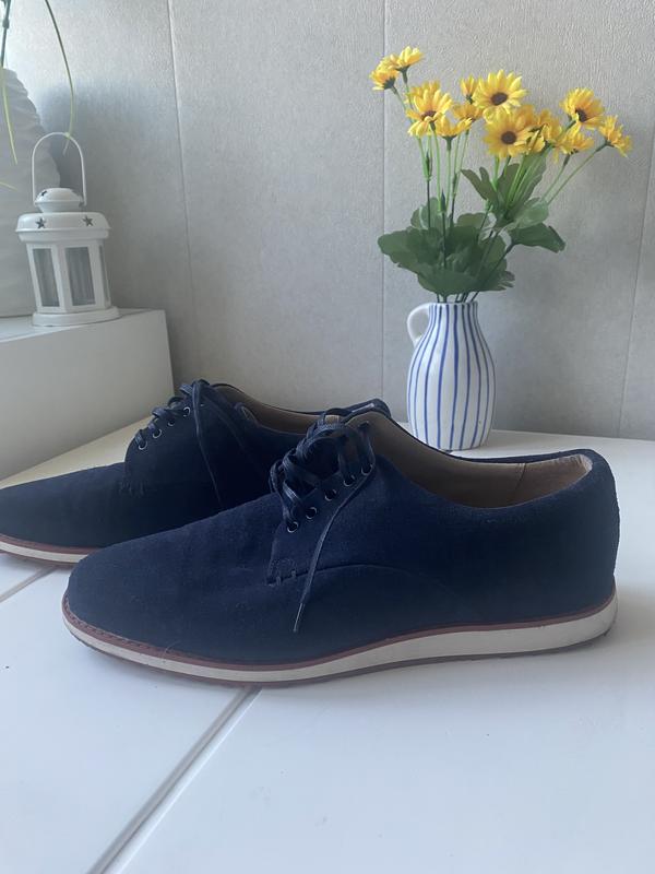 Річ особиста. Зверху на замші немає заломів. Довжина устілки 28см. Колір- насичений темно синій.