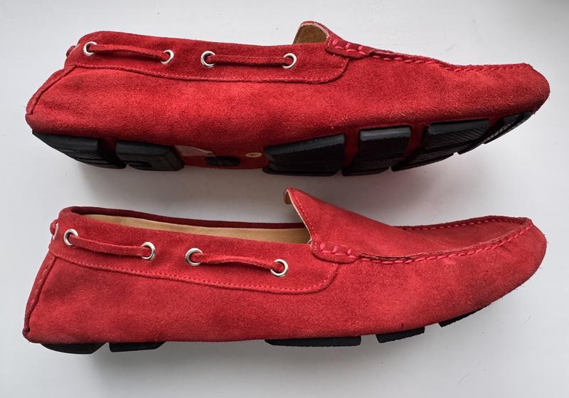 Лофери-драйвери (car shoes) виконані із натуральної замші яскравого червоного кольору.