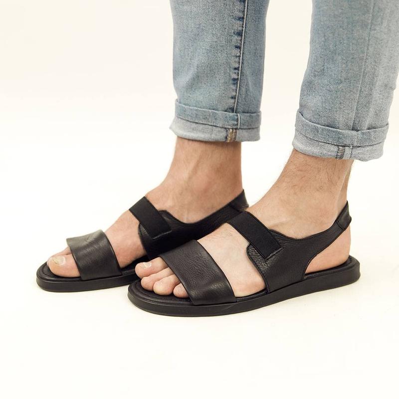 Стильные мужские сандалии/босоножки на резинке черные кожаные/кожа - мужская обувь на лето