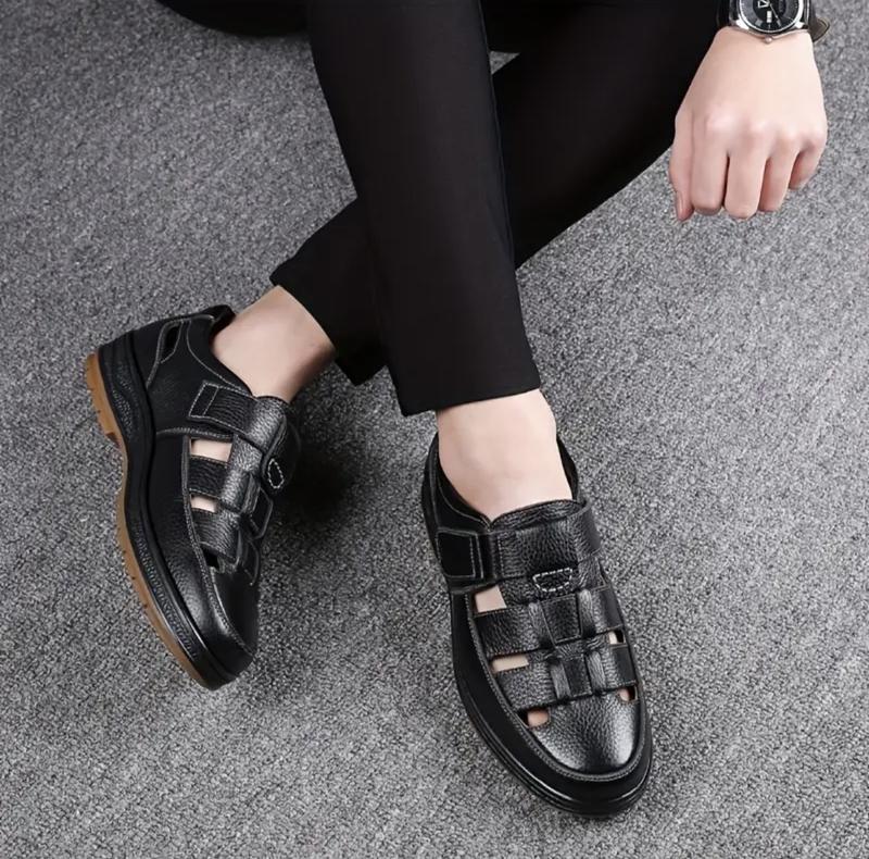 Чоловічі сандалі з закритим носком з натуральної шкіри, зручна гумова підошва проти ковзання, міцне взуття для прогулянок. 42/26.5 см 43/27 см